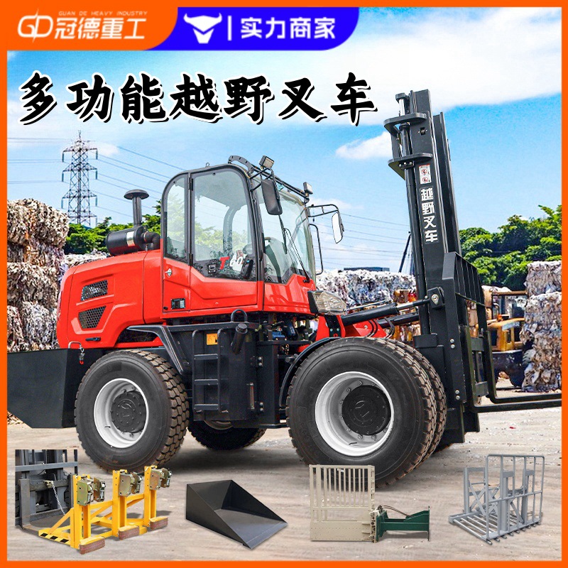 越野叉車3.5噸四驅一體式搬運車多功能升降裝卸抱夾山地燃 油叉車 1臺