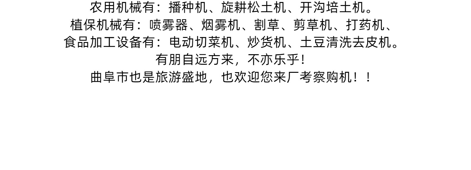 主營: 收獲機械 土壤耕整機械 植保機械