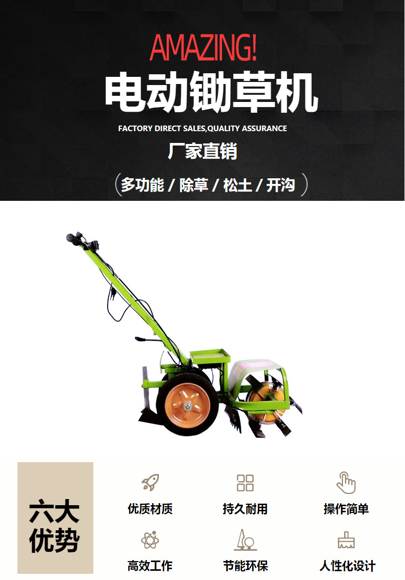 每小時(shí)鋤地1畝左右,輕便小巧提高人工效率,減輕勞動(dòng)強(qiáng)度的特點(diǎn)
