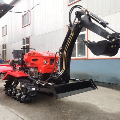 新款35馬力履帶旋耕機帶挖機的拖拉機農用果園大棚挖土開溝犁地
