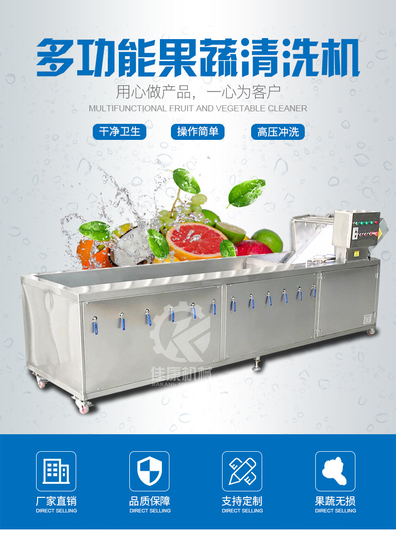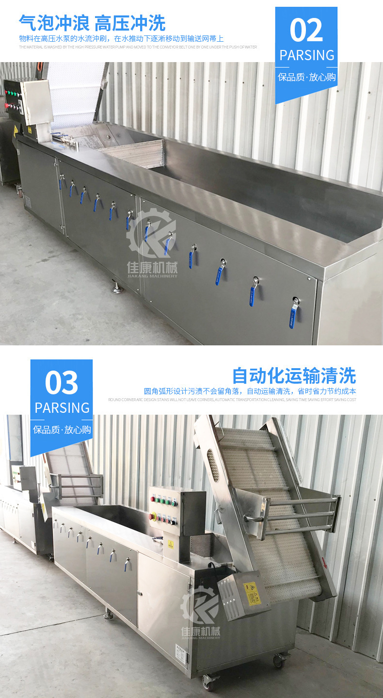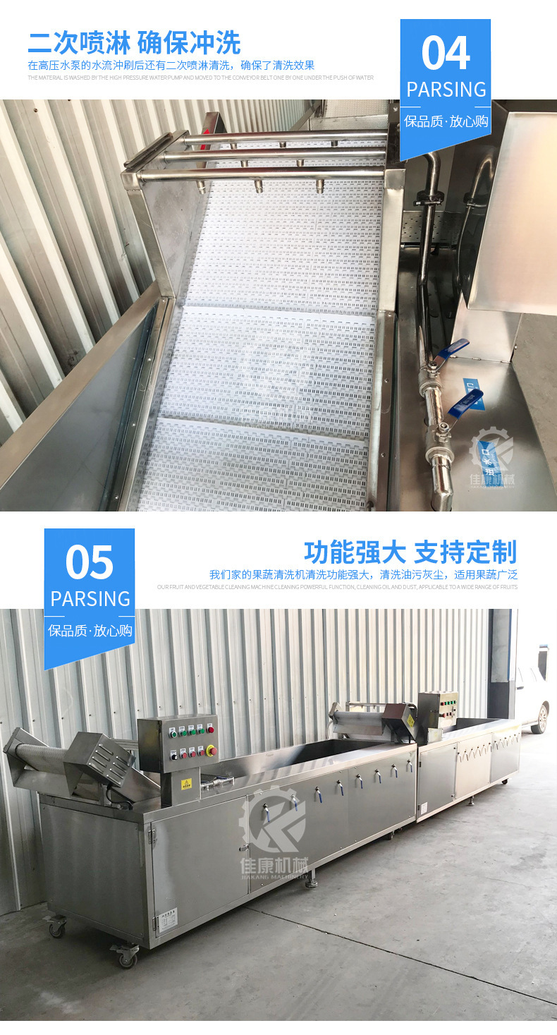 詳細信息 訂貨號JKQ-320 加工定制是 貨號JKQ-320 種類果蔬清洗機 品牌佳康 型號JKQ-320 功率2.6(kw) 電壓380(V) 外形尺寸3200*900*1300(mm) 產品用途果蔬清洗機 凈重240(kg) 包裝纏繞膜 適用范圍冷凍食品廠設備,休閑食品廠設備,果蔬加工廠設備,其他 營銷新品 規格JKQ-320,JKQ-220 是否跨境出口專供貨源