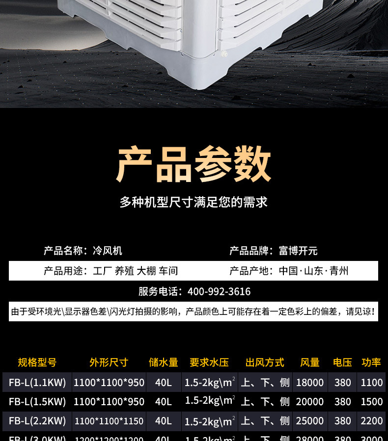 詳細(xì)信息 商品屬性 訂貨號(hào)14 加工定制是 貨號(hào)1401 品牌富博 型號(hào)1.1KW 類型冷風(fēng)機(jī) 用途工廠 養(yǎng)殖 大棚 車間 控溫范圍10 流量壓力1 風(fēng)量3000(m3/h) 制冷量10(kw) 規(guī)格1.1KW,1.5KW,2.2KW,1.1-1.5變頻器,2.2變頻器,3KW 有可授權(quán)的自有品牌是 是否跨境出口專供貨源是