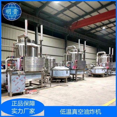 1、加熱、油炸、儲油、脫油、脫水、油過濾一體化設計,在真空下連續性完成,產品含油量低,產品處于負壓狀態,在這種相對缺氧的條件下進行食品加工,可以減輕甚至避免氧化作用(例如脂肪酸敗、酶促褐變和其他氧化變質等)所帶來的危害。在負壓狀態,以油作為傳熱媒介,食品內部的水分(自由水和部分結合水)會急劇蒸發而噴出,使組織形成疏松多孔的結構;