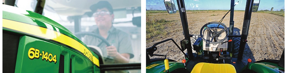 約翰迪爾6B系列拖拉機(jī)包含馬力段95-140馬力,配備業(yè)界領(lǐng)先的約翰迪爾PowerTech發(fā)動(dòng)機(jī),1404 6缸機(jī)扭矩儲備高達(dá)35%。性能卓著的約翰迪爾變速箱,獲得了近乎完美的表現(xiàn)。標(biāo)配12個(gè)前進(jìn)擋4個(gè)倒退擋,120馬力以上機(jī)型可選裝24x8高低速動(dòng)力換擋變速箱。1204,1404機(jī)型豪華版機(jī)型配有24個(gè)前進(jìn)擋12個(gè)倒退擋,還標(biāo)配動(dòng)力前后換擋機(jī)構(gòu),無需踩離合,只需手柄即可切換行駛方向,流暢省時(shí)。該系列拖拉機(jī)采用了全新整體式引擎罩;整體式大面積進(jìn)氣格柵,保證了便利的維護(hù)。全新設(shè)計(jì)的后懸掛包括雙外置提升油缸,可在提高提升能力的同時(shí)降低維護(hù)時(shí)間和成本。寬敞舒適的駕駛室視野極佳,密封性能好,噪音低。高擋坐椅,可方便進(jìn)行水平及舒適度調(diào)節(jié)。1204,1404豪華機(jī)型更有可調(diào)角度、長度方向盤,舒適性更進(jìn)一步。豪華、高配和舒適機(jī)型配有空調(diào)暖風(fēng)。豪華、高配和舒適機(jī)型在17年均增加兩組前工作燈,保障了駕駛員夜間工作的安全性和作業(yè)效率。6B系列拖拉機(jī)采用了PowerCore空濾系統(tǒng),過濾效果更好,更高效提升20%空氣流通容量,且無需工具即可方便的維護(hù)。1404六缸機(jī)型將油箱容積提高到255升,效率的飛躍,顯而易見。1404六缸機(jī)標(biāo)配濕式離合,壽命長達(dá)1萬小時(shí)。