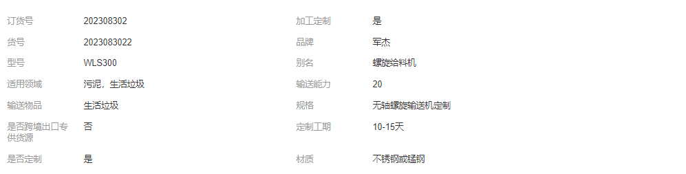 無軸螺旋輸送機定制無空芯絞龍給料機污泥生活垃圾抗纏繞定制