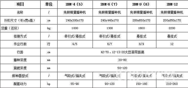琦誠2BM系列懸掛精量免耕播種機技術參數: