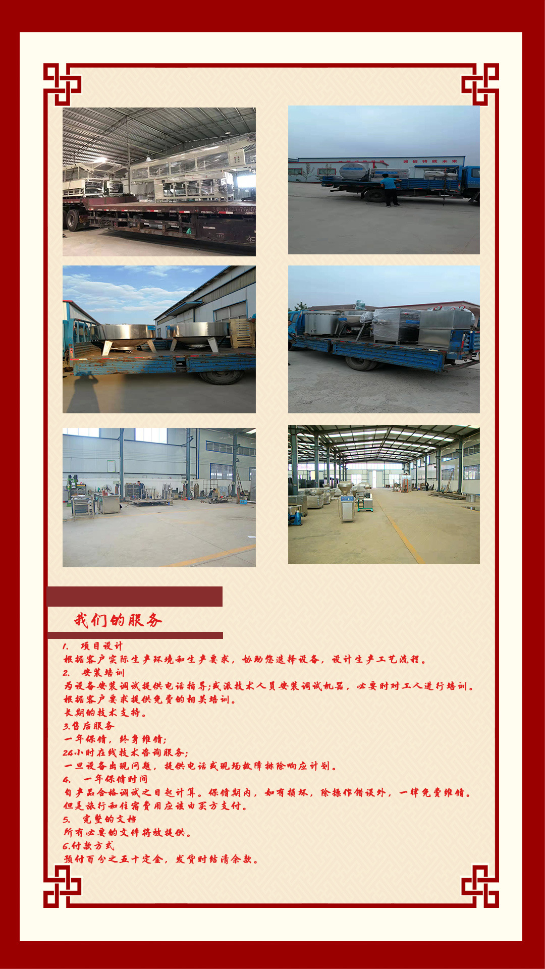 2、在設備驗收交付使用之日起,對產品提供一年的免費保修,(含自然損壞零件費,電器元件除外,如屬貴公司人員由于操作不當所造成的損壞,經協商后只收取適當材料費)。保修期滿后,我公司對產品提供永久性保修,只收取適當成本費,免收人工費。