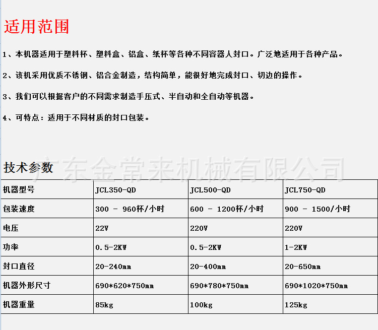 詳細信息 訂貨號5040氣動封盒機 加工定制是 貨號5040氣動封盒機 類型包裝封口機 品牌金常來 型號5040氣動封盒機 功率0.5--2(Kw) 重量100(kg) 外形尺寸690*1000*750(mm) 包裝材料塑料/紙杯/鋁罐/不銹鋼 包裝類型管/罐/桶/盆/碗/盒/杯/瓶 生產能力16(次/分)