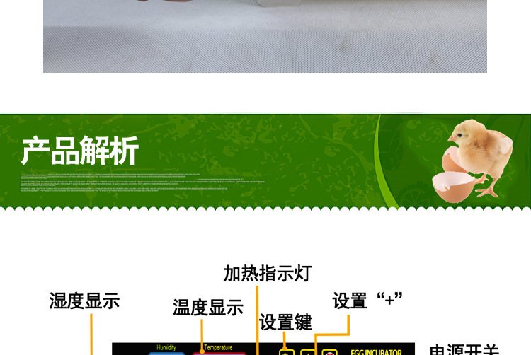 詳細信息 訂貨號48枚單/雙電源 加工定制是 貨號48枚單/雙電源 適用對象雞,鴨,鵪鶉,鴿 用途孵化設備 品牌HHD 型號48枚單/雙電源 外型尺寸- 包裝說明紙盒包裝 控溫范圍- 類型孵化器 產品類型全新 售后服務一年保修 產品規格單電源(220V/110V),雙電源(220V 12V) 主要下游平臺ebay,亞馬遜,wish,速賣通,獨立站,LAZADA 主要銷售地區非洲,歐洲,南美,東南亞,北美,東北亞,中東 有可授權的自有品牌是 是否跨境出口專供貨源是
