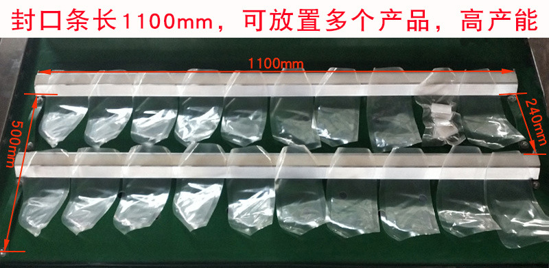 傳送帶采用進口專用材料,強度高、耐腐蝕、抗磨損、重量輕全鋁合金組合電機,采用高速需安裝定位儀。加熱元件全部安裝在上工作室,可避免受包裝物品(特別是液體)的影響而造成的短路等故障,并設計了冷水保護系統,加熱條的使用壽命高于同類產品。定位式工作室在一個工位上垂直升降重復作業。工作臺面角度可調,操作方便效率高,非常適合帶湯汁食品的真空(充氣)包裝。不銹鋼鏈條、大口徑氣路、無觸點控制、工作計數、走帶清洗等,是設備具有良好的使用性能。