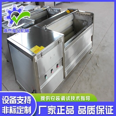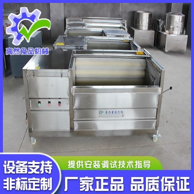 毛刷清洗脫皮機主要用于胡蘿卜、馬鈴薯、紅薯、蘋果、梨、紅果等根莖類果蔬的清洗以及豬頭豬蹄去毛,魚類去鱗。可在我廠研制的速凍薯條加工流水線上使用,也可單獨使用。
