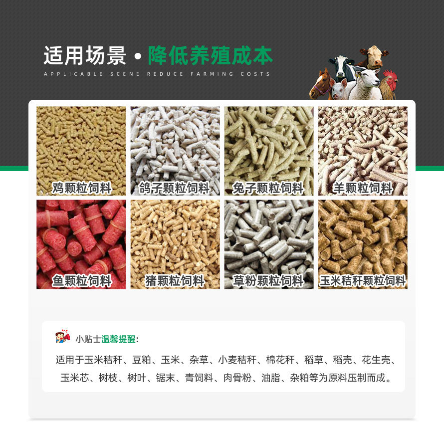 多功能小成套主要設(shè)備包括粉碎機(jī)、分離系統(tǒng)、風(fēng)送系統(tǒng)、混合喂料器、調(diào)質(zhì)系統(tǒng)、制粒設(shè)備、分選系統(tǒng)、冷卻系統(tǒng)、輸送機(jī)構(gòu)等組成。采用變頻調(diào)節(jié)對(duì)關(guān)鍵工作流程進(jìn)行控制,整套設(shè)備工藝流程完備合理,適應(yīng)性強(qiáng),可滿足不同層面的用戶的生產(chǎn)使用。