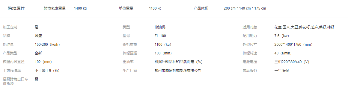 新型100型榨油機參數