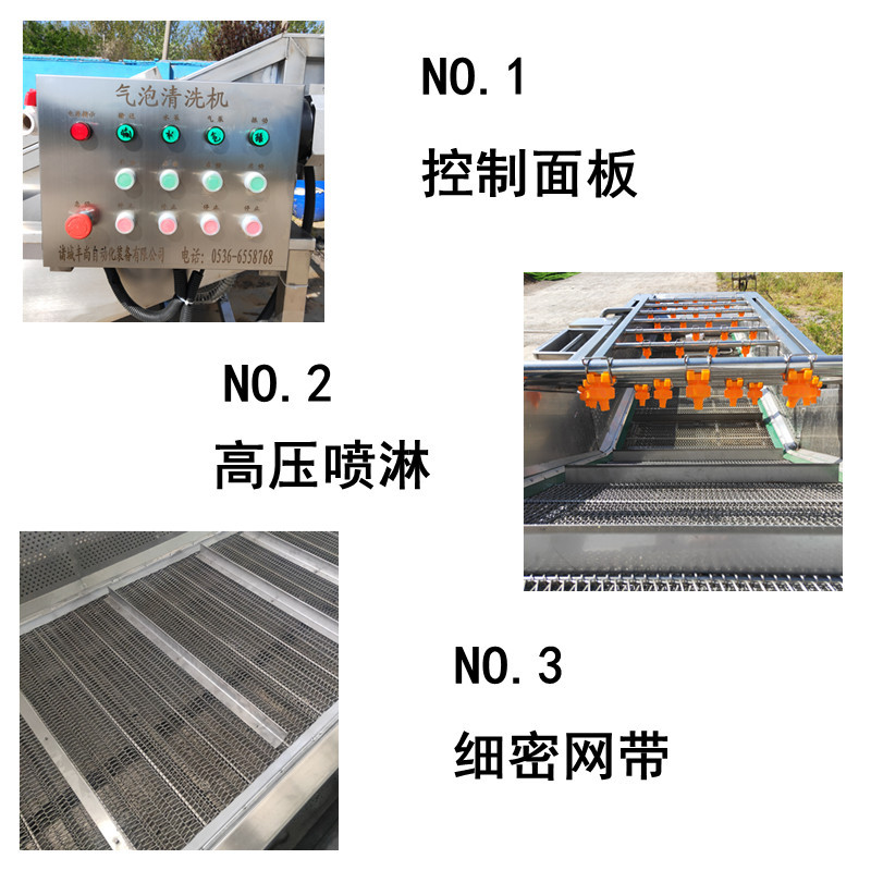 氣泡清洗機是水果,蔬菜,水產生產線中的重要產品,主要用于水果,蔬菜,水產的清洗。氣泡清洗機的原理主要是利用箱體前部分設備箱體中注適量的水,原料在經過箱體時,會與氣泡機和水的結合作用下做翻滾狀態,并隨網帶不斷向前推進,在出水面時,設有噴淋頭,高壓沖洗。 氣泡清洗機是針對外形要求高的物料設計,適用于:蔬菜、水果、水產品、中草藥等顆粒狀、葉狀、根莖類產品清洗、浸泡。