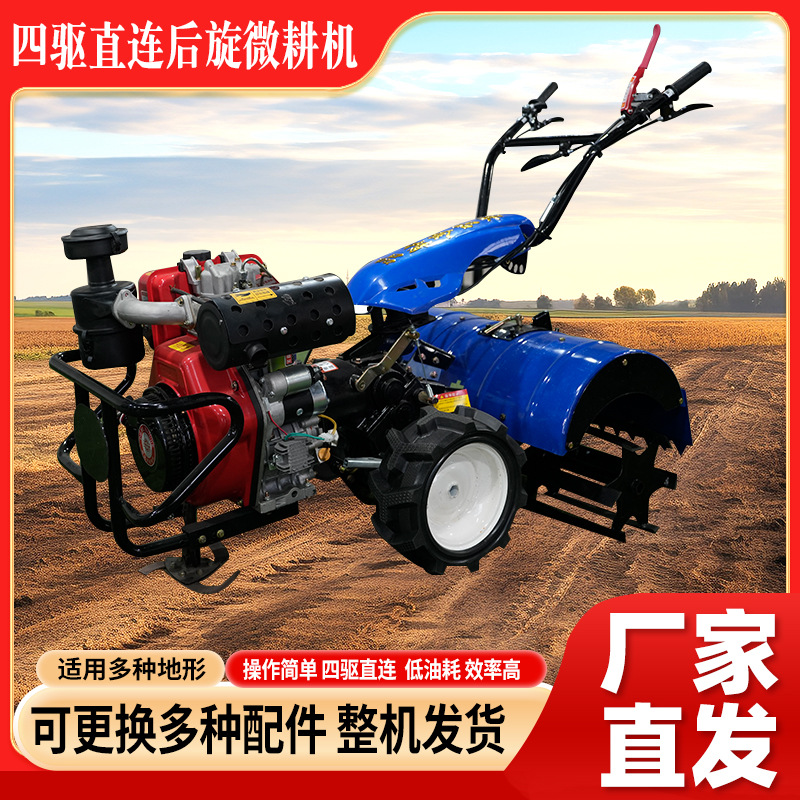 四驅直連后旋微耕機農用耕地起壟開溝旋耕機家用汽油小型除草機器