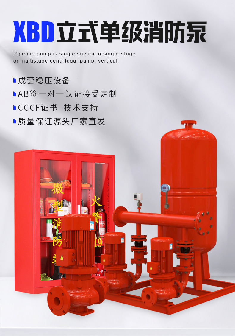 立式多級消防泵XBD消火栓噴淋系統增壓3CCCF認證AB簽消防穩壓水泵