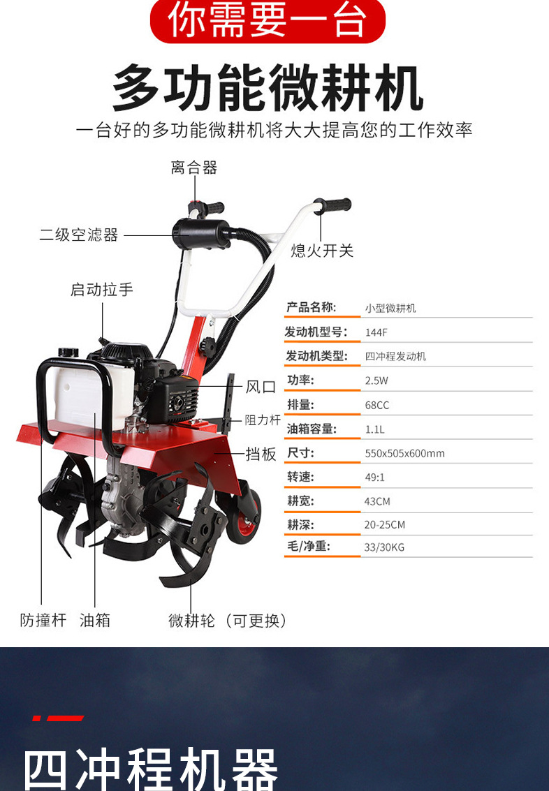 定制跨境批發手推式微耕機小型多功能開溝機汽油旋耕批發
