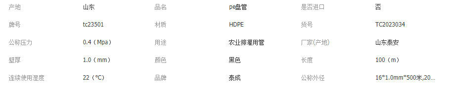 農用灌溉pe管 韌性高內壁光滑農田大棚園林綠化 pe盤管排水管