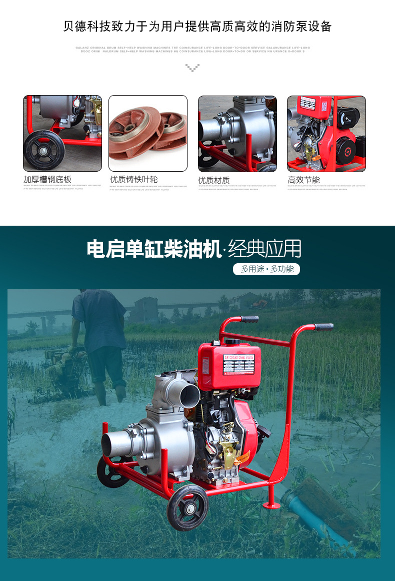貝德手抬式柴油消防泵可移動手推式汽油抽水泵應(yīng)急農(nóng)田灌溉泵