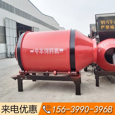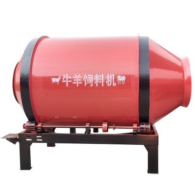 草料攪拌機操作簡單,維修方便,節省人工,單批生產速度快。適合中小型牛羊養殖場,個體養殖戶使用。飼草攪拌機在其內部設置2對攪拌板(下文稱為A和B),在開機運轉后,滾筒開始做順時針運轉,A攪拌板把物料向后推動,B攪拌板推動物料向前移動,通過循環達到混合效果。 能混合粉碎后的玉米秸桿,黃豆秸桿,干草等,只需短時間攪拌即可完成混合要求。精料玉米粉,麥麩皮,豆餅??梢淮涡蕴砑舆M料門入料后開機攪拌5-10分鐘即可?;旌虾笤跐L筒外置放料門放料。放料迅速可直接放置于推車內省時省力。