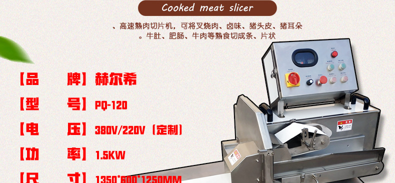 詳細信息 訂貨號QP-120 加工定制否 貨號QP-120 種類切肉片機 品牌赫爾希 型號QP-120 電壓380(V) 功率1.5(kw) 凈重160(kg) 包裝塑包 外形尺寸1350*600*1250(mm) 產品用途食品切片切條 適用范圍冷凍食品廠設備,休閑食品廠設備,肉制品加工廠設備,西餐店設備,中餐店設