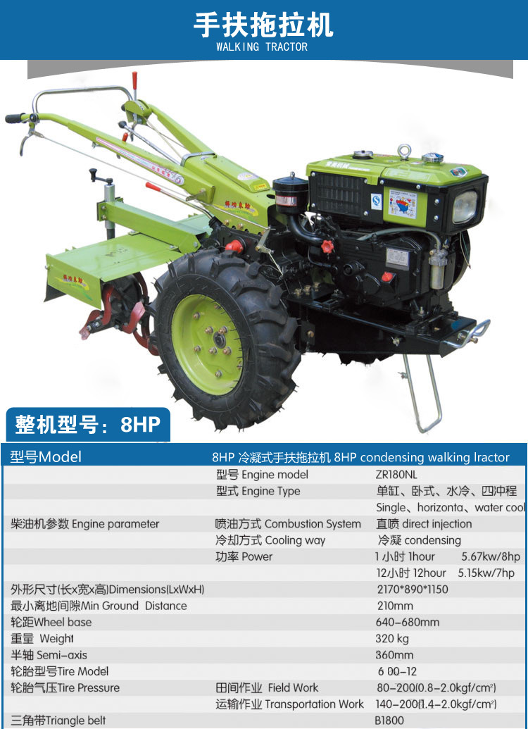 四孔箱體。王字檔,方把,兩槽離合器,600-12鋼板護圈。8-25馬力才柴油機可選