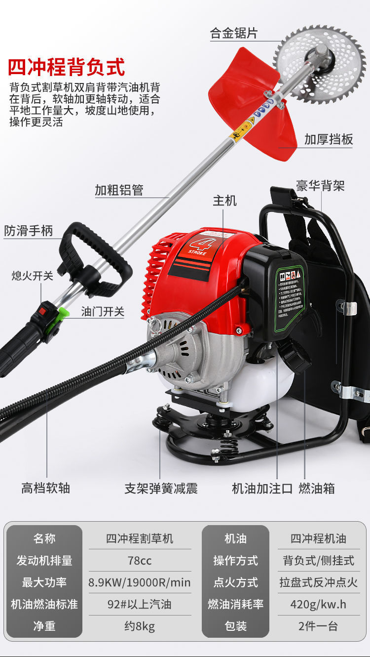 割草機背負四沖程農用小型割稻打草機家用開荒除草機