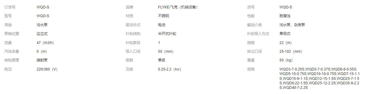 飛克定制304/316全不銹鋼污水污物潛水泵耐酸堿耐高溫化工污水泵