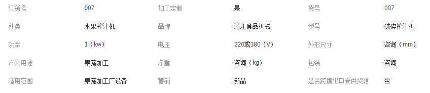 該機用于所有果蔬(核果須經去核)的榨汁,適用于生姜、麥苗等物料的破碎榨汁。