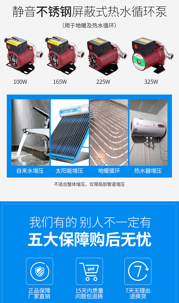 雨沃不銹鋼屏蔽循環泵暖氣增壓泵地暖回水泵120W165W300W廠家