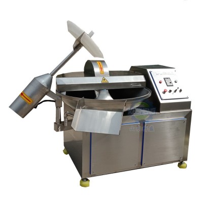 斬拌機利用斬刀高速旋轉的斬切作用,將肉塊,碎肉,脂肪等主要原料精細的斬切成肉餡或肉泥,同時將其它原料如水,冰片,輔料一起攪拌成均勻的乳狀物。斬刀高速旋轉,可以縮短運行時間,減少物料發熱量,保持餡料的天然色澤、彈性、出品率和產品的保質期。