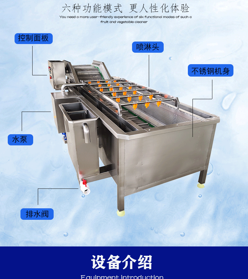 蔬菜加工、水果加工、飲料行業(yè)、罐頭行業(yè)、農(nóng)產(chǎn)品加工、醬類加工等領(lǐng)域的物料清洗工序。