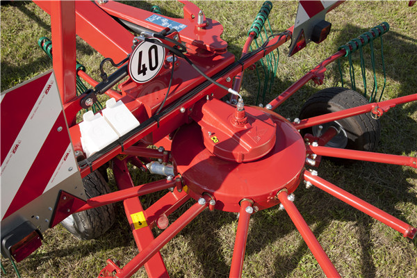 采用4輪支撐地盤,地面仿形能力強,摟草效果好,采用快速提升裝置,最大離地間隙50厘米