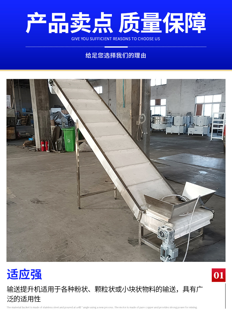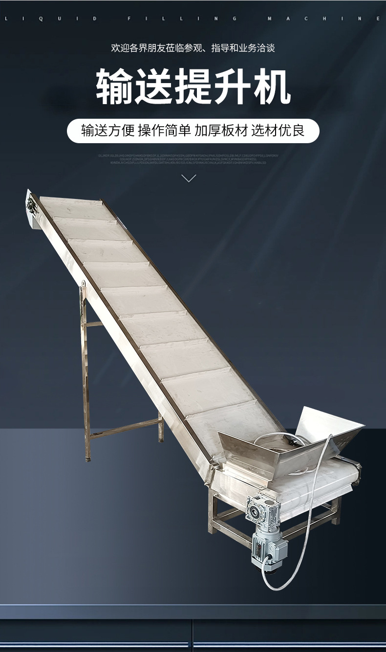 供應不銹鋼輸送提升機食品物料上料輸送設備用爬坡式流水線輸送機