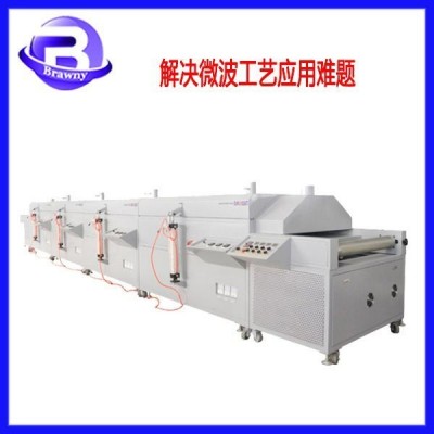 4、工藝先進,可連續(xù)生產(chǎn):只要控制微波功率即可實現(xiàn)加熱或終止,它有完善的傳送系統(tǒng),可確保連續(xù)化生產(chǎn),實現(xiàn)計算機控制,節(jié)省勞力。5、安全無害:由于微波能是控制在金屬制成的加熱室內(nèi)和波導(dǎo)管中工作,所以微波被有效的控制。沒有放射性危害及有害氣體排出,不產(chǎn)生余熱,既不污染食物,也不污染環(huán)境,改善勞動條件。6、設(shè)備占地面積小,節(jié)省投資