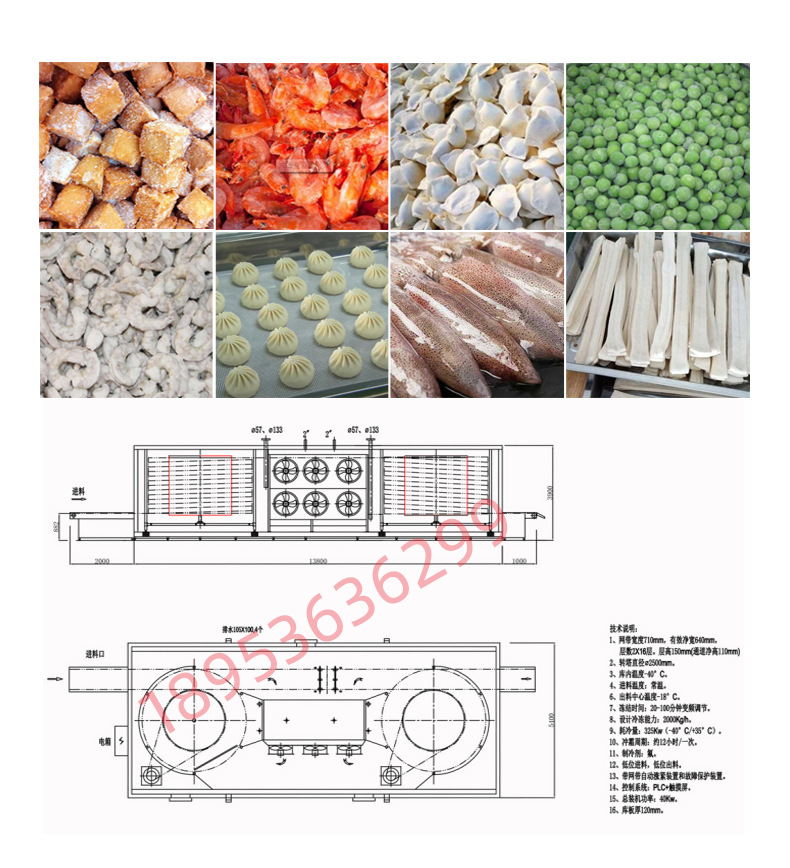 海鮮多層螺旋速凍塔設備 黃花魚螺旋單體食品速凍裝置 螺旋速凍機 |