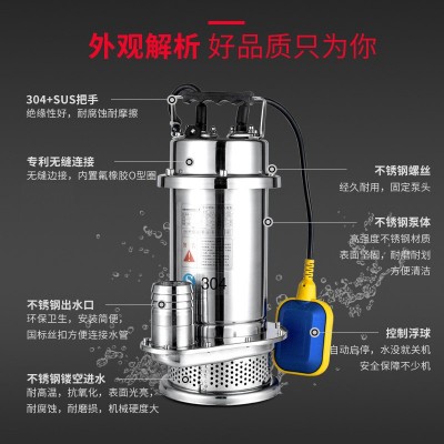 750W食品衛(wèi)生級防耐腐蝕酸堿304井用清水潛水電泵全不銹鋼潛水泵