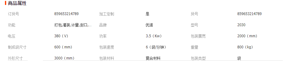 定量包裝機技術參數