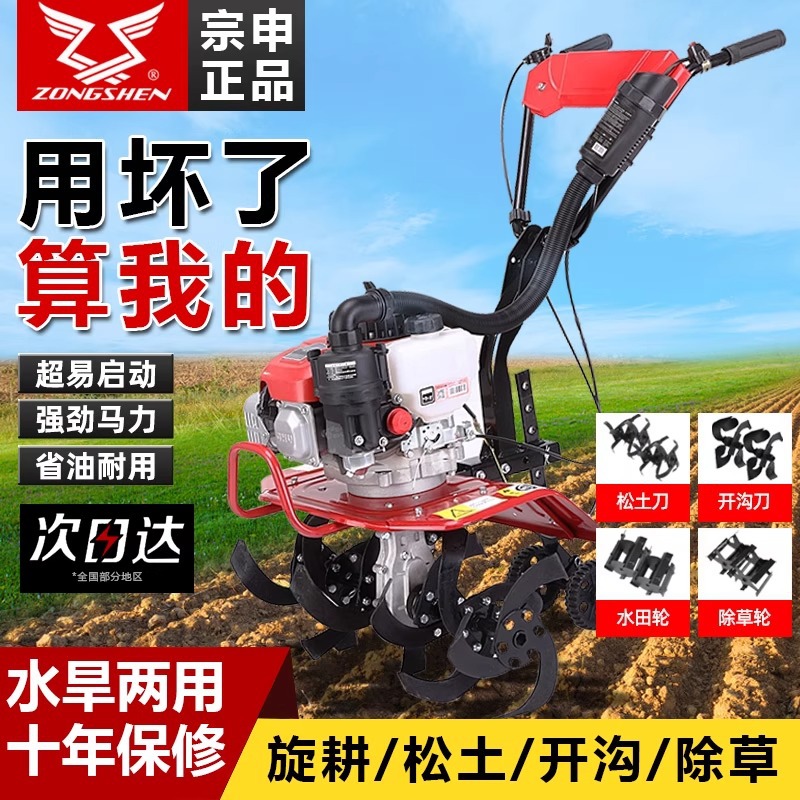 宗申微耕機四沖程小型農用耕地機多功能除草開溝旋耕開荒松土神器
