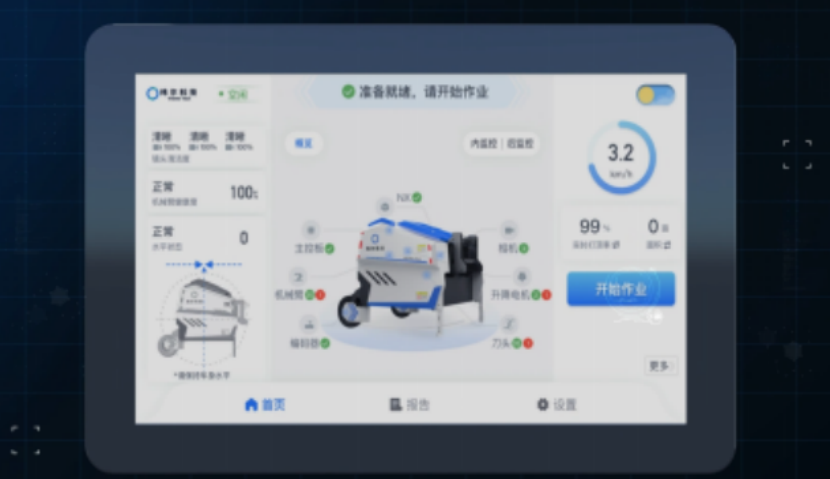 ◆ 配智能平板 , 實時查看機械臂健康度、 打頂率、 作業面積以及實時監控打頂情況等 , 作業狀態全掌握。