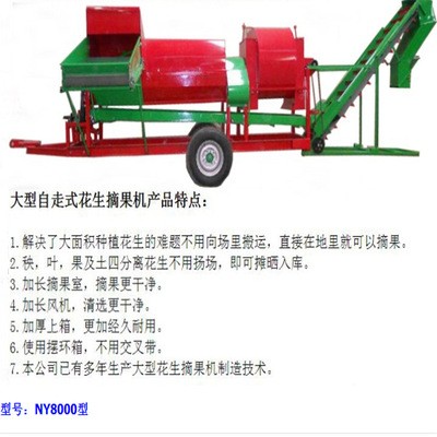8000系列花生摘果機是2018新款機器,比上款增大了軸承加快了動力輸出,將帶果花生秧從喂料口喂入后,固定在主軸上的橫向螺旋輸送攪龍帶動下使帶果花生秧處于離心旋轉狀態,在摘果機的阻攔下,將花生從花生秧上分離下來,摘下果的花生秧在衡向螺旋輸送攪龍旋轉帶動下被輸送到排料盤去。分離下的花生果及破碎的莖、葉、土雜經欄條隙落進機具的振動篩上,經振動棒晃。土雜被清除出去,花生果及破碎的莖、葉被傳遞到風選裝置下經兩次,風選,干凈的花生從震動篩出口處留出,完成花生摘果清洗作業。