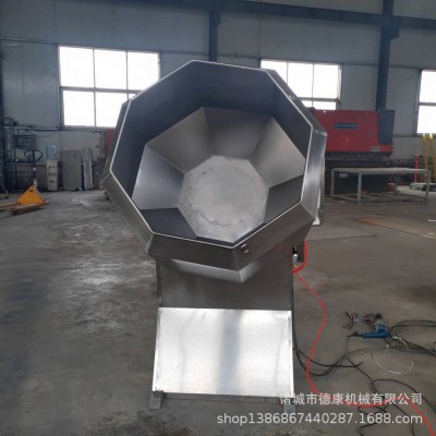 采用減速電機(jī),齒輪傳動,使油炸的食品不破碎,自動攪拌;拌料均勻。操作方便;產(chǎn)量高,不銹鋼制作,滾筒的轉(zhuǎn)速和傾斜度都可以調(diào)節(jié),給粉量也可以控制;可以對任何食品進(jìn)行調(diào)味、拌料。根據(jù)油炸食品的形狀特點(diǎn)設(shè)計(jì)制造的八角桶拌料機(jī),是油炸食品調(diào)味、拌料的專用設(shè)備,是目前國內(nèi)先進(jìn)的油炸食品調(diào)味設(shè)備。