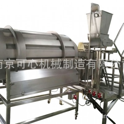 最近,南京可心機械制造有限公司推出一款新型的調味品施加系統——快速后退式調味滾筒輸送機,這是專門為包裝物和在機器上施加調味品的小吃產品而設計的,并配備有和緩的、水平運動輸送機和調味品進料器。這三項技術的結合使調味品分布更優良、調味品施加比率更加精確、占地面積更小、轉換和清潔處理更快,以及更少的產品破損。