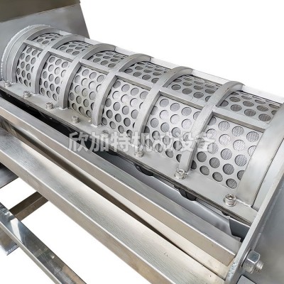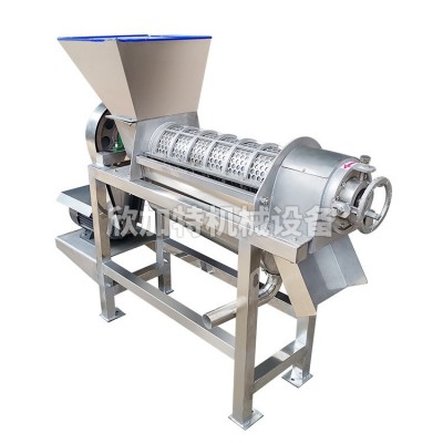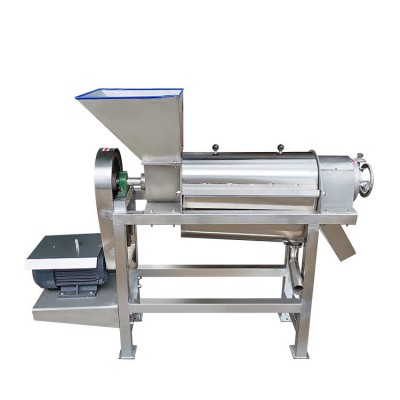Working principle: The main component of this equipment is the spiral, which gradually increases the bottom diameter along the direction of the slag outlet and decreases the pitch. When the material is pushed forward by the spiral, the volume of the spiral cavity decreases, forming a pressure on the material. The rotation direction of the spiral spindle is clockwise when viewed from the feeding hopper towards the slag groove. The raw materials are added to the feeding hopper and pressed under the push of the screw. The squeezed juice flows into the bottom juice container through the filter screen, while the waste is discharged through the gap formed between the screw and the conical part of the pressure regulating head. The movement of the pressure regulating head along the axial direction can adjust the size of the gap. When transferring the handwheel bearing seat clockwise by hand (looking from the slag discharge groove of the equipment to the feeding hopper), the pressure regulating head should be turned to the left, and the gap will be reduced. Otherwise, the gap will become larger. Changing the size of the gap, that is, adjusting the resistance of the residue, can change the juice yield. However, if the gap is too small, under strong compression, some of the residue particles will be squeezed out together with the juice through the filter screen. Although the juice yield increases, the quality of the juice will relatively decrease. The size of the gap should depend on the specific process requirements of the user.