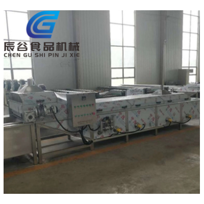 蒸煮漂燙流水線有蒸煮機,冷卻機、瀝水機等組成。整機采用SUS304不銹鋼制作,漂燙溫度、速度可根據工藝要求設定。該機運行平穩,噪音低,伸縮性小,不易變形,易保養。水溫由溫控儀自動控制,速度采用變頻調速。