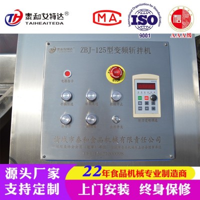 ·變頻調速型斬拌機選用優質變頻器和變頻電機,使斬刀速度在500-3600 轉/min間任意調整,該機噪音小,效率高,節能效果顯著。斬刀選用有機材料經特殊工藝加工而成,斬刀軸采用40Cr材質,經真空調質,增加了軸的強度和表面硬度,延長了使用壽命。