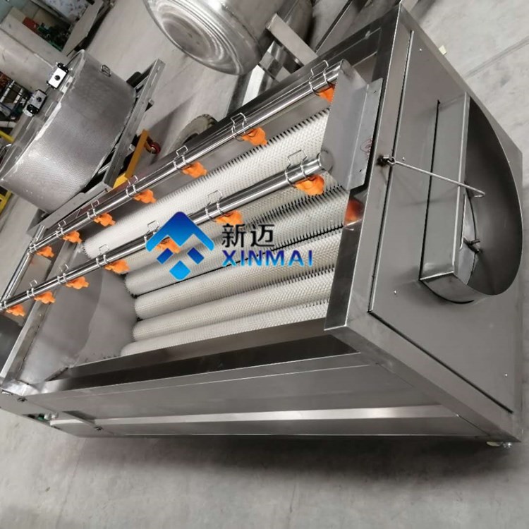 采用不銹鋼SUS304材料制作,符合出口食品衛(wèi)生要求。毛刷清洗機(jī)是我公司設(shè)計(jì)的一款小型的清洗設(shè)備,其占地面積較小,清洗效果好,價(jià)格低廉,深受廣大客戶的青睞。主要針對(duì)塊狀的產(chǎn)品清洗,比如:土豆,胡蘿卜,山芋,馬鈴薯,紅薯,瑪卡等農(nóng)副產(chǎn)品,魚(yú)類、扇貝、貝殼類。毛輥清洗機(jī)整機(jī)采用304不銹鋼焊接而成,美觀大方,設(shè)計(jì)合理,結(jié)構(gòu)簡(jiǎn)單,操作更簡(jiǎn)單,便于日常維護(hù)。設(shè)備主要由框架,噴淋管,毛刷,電器,電機(jī)等幾部分組合而成。我公司生產(chǎn)的毛刷清洗機(jī)毛刷采用高品質(zhì),實(shí)心輥,具有不掉毛,耐磨,穩(wěn)定性強(qiáng)等特點(diǎn)。毛輥清洗機(jī)配備8-13根毛輥,常用的是9根毛輥。毛刷分為常規(guī)跟波浪式兩款。根據(jù)產(chǎn)品的特性,配備不同的毛刷款式。毛輥清洗機(jī)運(yùn)轉(zhuǎn)時(shí),產(chǎn)品跟隨毛輥轉(zhuǎn)動(dòng)。360度的旋轉(zhuǎn),360度的清洗,在毛刷跟產(chǎn)品滾動(dòng)的同時(shí),噴淋水對(duì)產(chǎn)品進(jìn)行沖刷,保證產(chǎn)品清洗無(wú)死角,有效的去除產(chǎn)品表面及夾縫的污垢達(dá)到良好的清洗效果。并且節(jié)省水能。毛輥清洗機(jī)的雜質(zhì)排出主要原理是噴淋水的沖刷,通過(guò)毛輥的運(yùn)轉(zhuǎn),將清洗下來(lái)的雜質(zhì)轉(zhuǎn)送到設(shè)備的底部,設(shè)備底部設(shè)計(jì)有回收料斗,將雜質(zhì)進(jìn)行統(tǒng)一集中排出。清洗效率,為企業(yè)降低產(chǎn)品的生產(chǎn)成本。目前常規(guī)生產(chǎn)的型號(hào)有:1000型,1500型,1800型,三款型號(hào),是我公司吸取了國(guó)內(nèi)外對(duì)瓜果加工機(jī)械的特點(diǎn),取其優(yōu)點(diǎn)設(shè)計(jì)制作。簡(jiǎn)單,耗能低,占地小,效率高是它具有的特點(diǎn)。