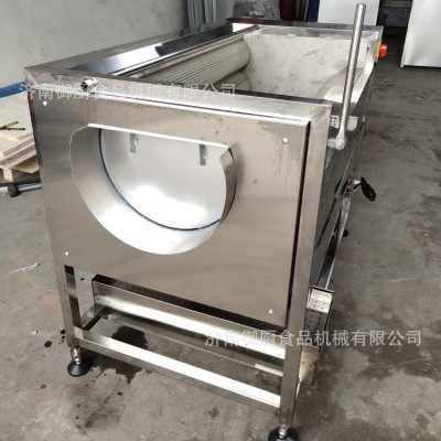 毛輥清洗機整機采用不銹鋼焊接而成,美觀大方,設計合理,結構簡單,操作更簡單,便于日常維護。設備主要由框架,噴淋管,毛刷,電器,電機等幾部分組合而成。我公司生產的毛刷清洗機毛刷采用高品質,實心輥,具有不掉毛,耐磨,穩定性強等特點。毛輥清洗機配備8-13根毛輥,常用的是9根毛輥。毛刷分為常規跟波浪式兩款。根據產品的特性,配備不同的毛刷款式。毛輥清洗機運轉時,產品跟隨毛輥轉動。360度的旋轉,360度的清洗,在毛刷跟產品滾動的同時,噴淋水對產品進行沖刷,保證產品清洗無死角,有效的去除產品表面及夾縫的污垢達到良好的清洗效果。并且節省水能。毛輥清洗機的雜質排出主要原理是噴淋水的沖刷,通過毛輥的運轉,將清洗下來的雜質轉送到設備的底部,設備底部設計有回收料斗,將雜質進行統一集中排出。清洗效率,為企業降低產品的生產成本。