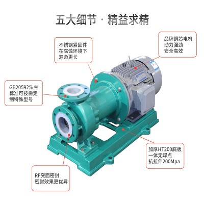 CQB系列氟塑料磁力驅(qū)動(dòng)泵,采用磁力耦合傳動(dòng),不存在動(dòng)密封點(diǎn)。其過流部件采用氟塑料及高純度工業(yè)陶瓷制成,具有優(yōu)異的耐腐性及密封性。