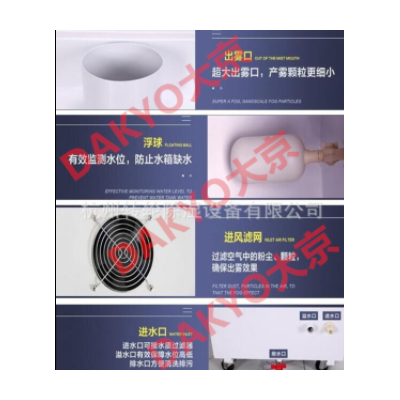 DAKYO大京超聲波工業(yè)加濕器采用電子超頻震蕩(震蕩頻率為1.7MHz),通過霧化片的高頻諧振,將水拋離水面而產(chǎn)生自然飄逸的水霧,不需要加熱或化學(xué)劑而產(chǎn)生1-5微米的水顆粒漂浮于空氣中,從而達(dá)到提高空氣相對(duì)濕度的作用。